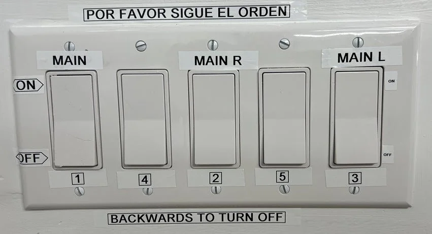 3. On the switch panel follow the number sequence to Turn OFF backwards.